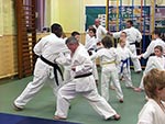 Sensei Barlow demonstrating Jiyu Kumite (Free fighting) with Duwain